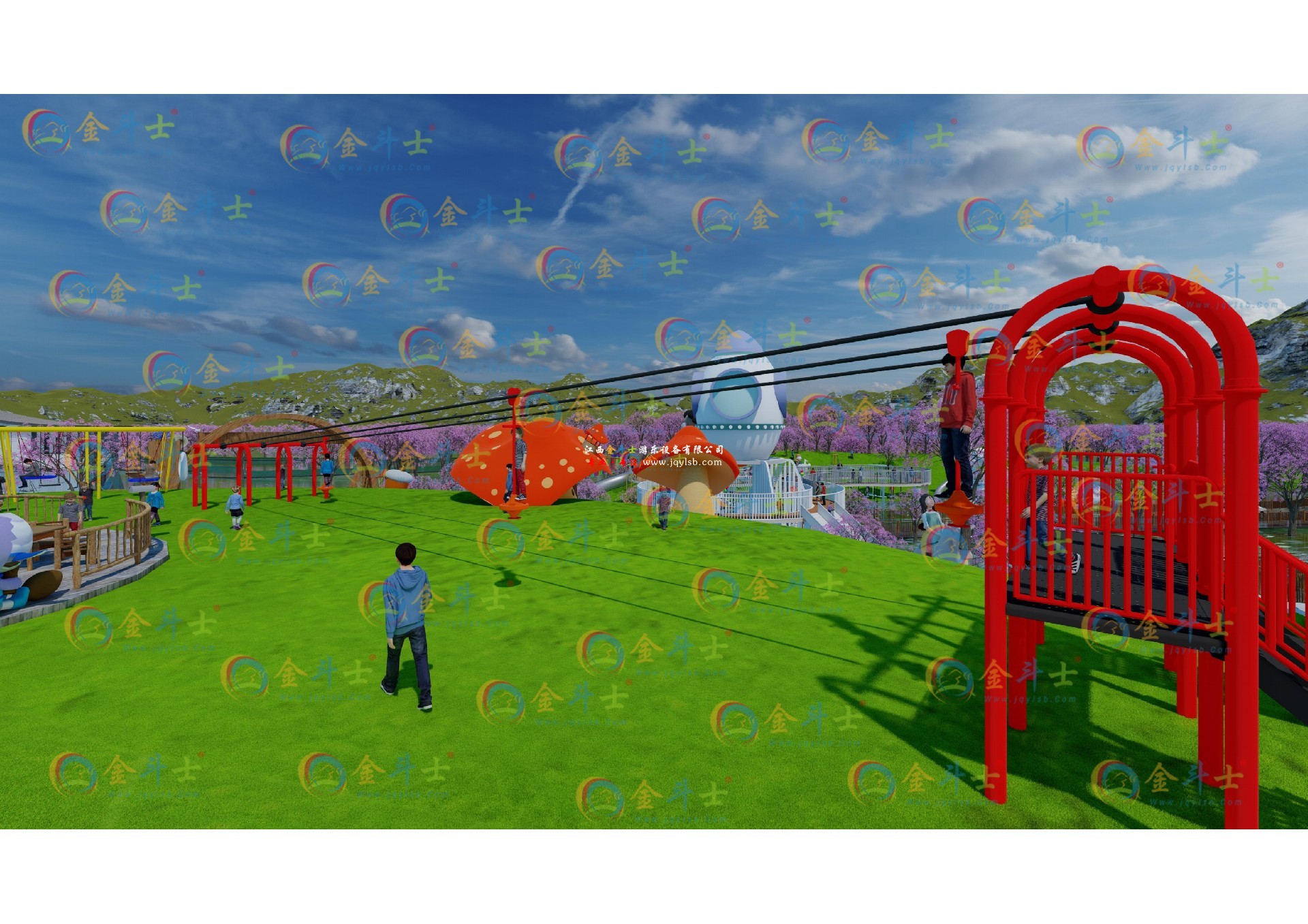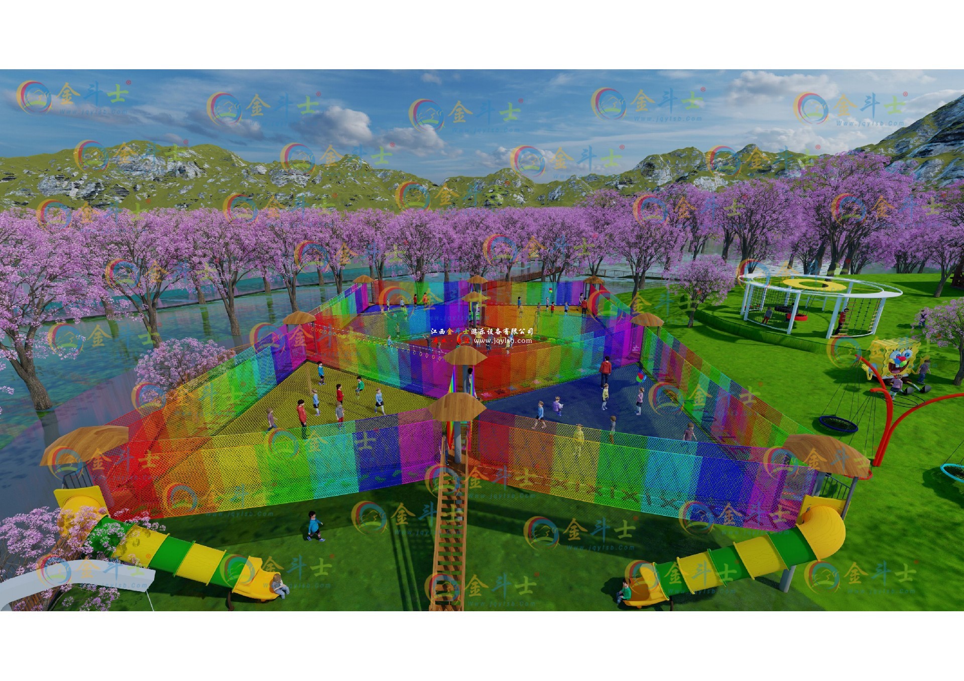 歡迎光臨“彩虹滑道、蹦蹦云、無動力設備、叢林穿越、戶外拓展、大型滑梯等景區(qū)游樂設備廠家江西金斗士游樂”官方網(wǎng)站!